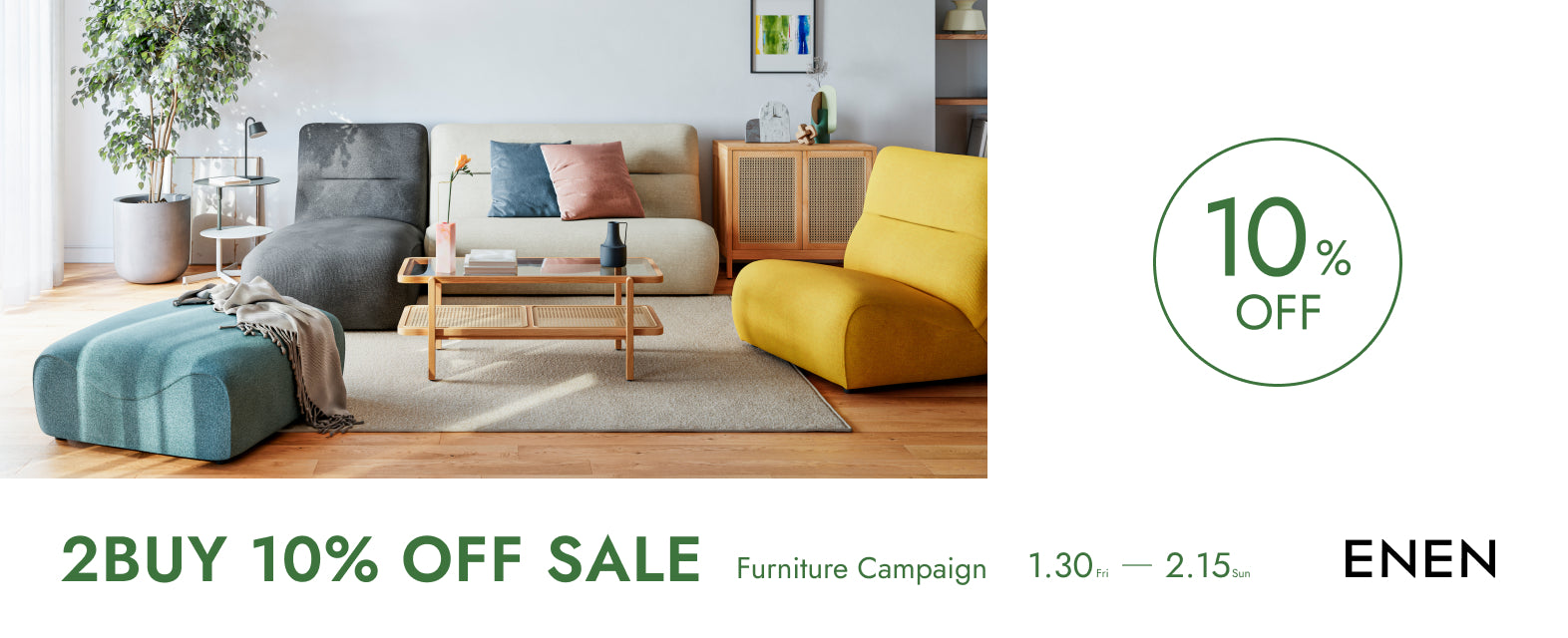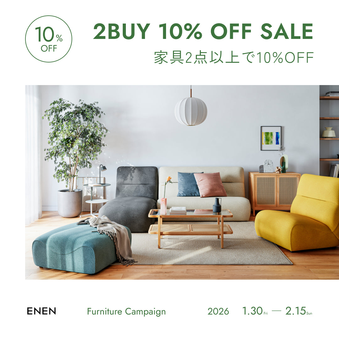 ソファ、テーブル、収納など、対象カテゴリーの家具を組み合わせ自由で2点以上ご購入いただくと、商品代金から10%OFFとなります。新生活や模様替えにぴったりのこの機会を、ぜひお見逃しなく。※セール品も対象となります