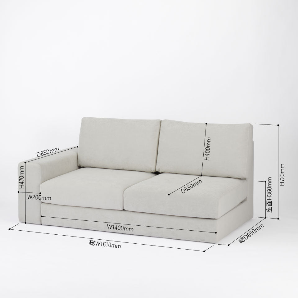 KUUM フルカバーソファ 2人掛け 幅161cm | 片肘ワイドタイプ