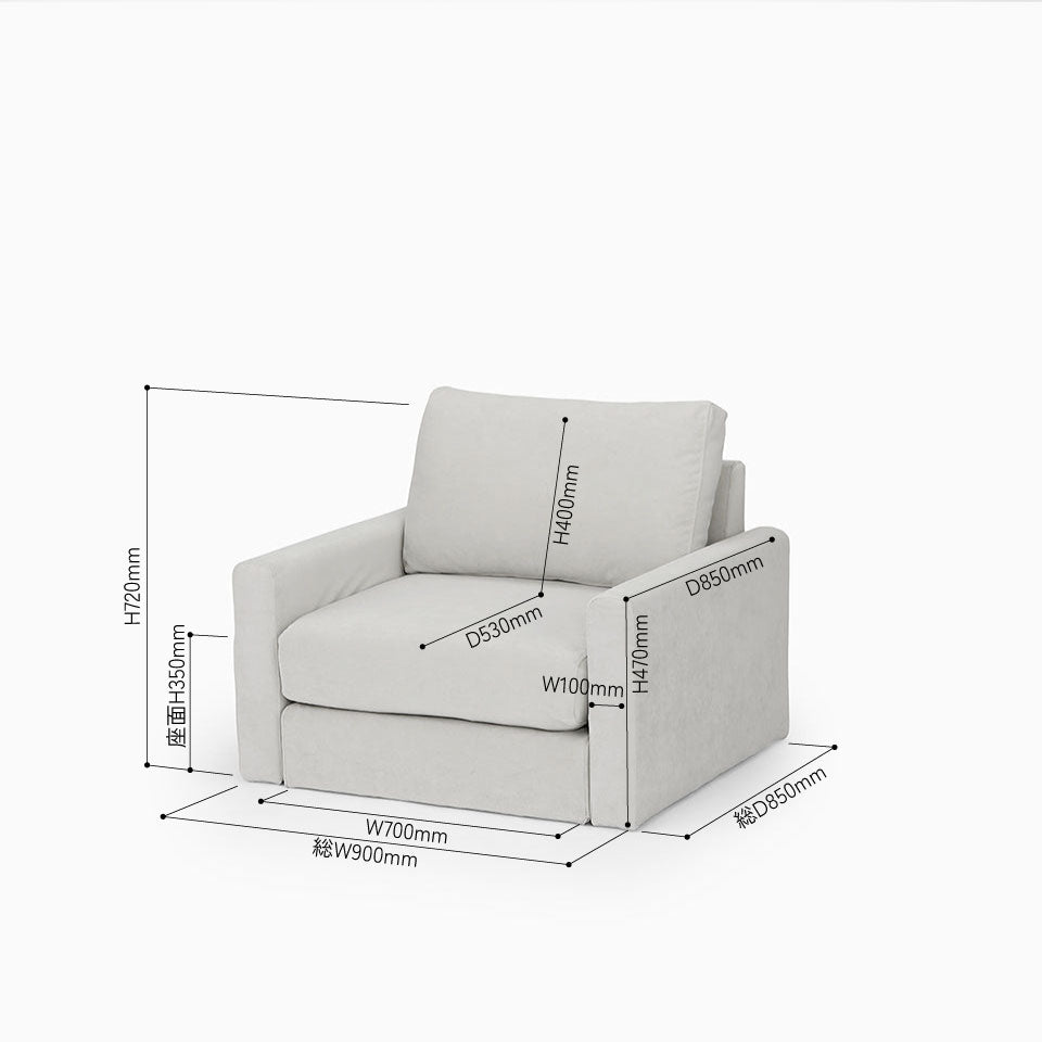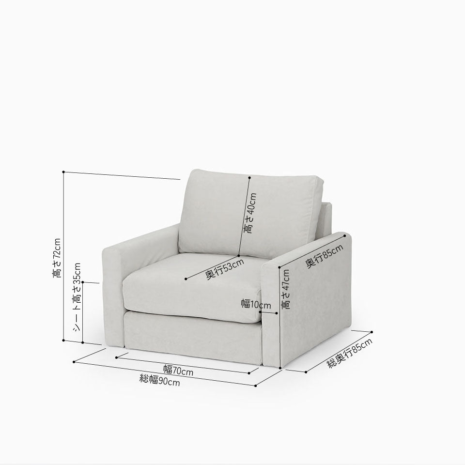 KUUM フルカバーソファ 1人掛け 幅90cm | 両肘スリムタイプ